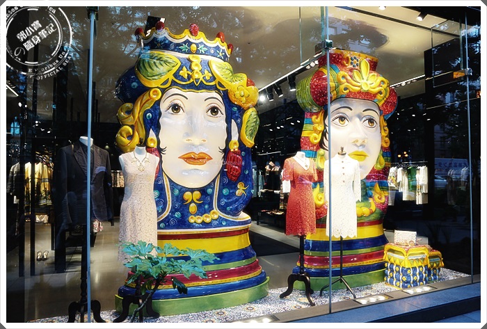 兩邊的櫥窗都有大大的藝術裝置頭像,好像是服飾店的樣子,看起來相當的繽紛逗趣,也增加了我們後來幾天走到這邊就知道飯店到了,一點都不用抬頭看招牌XD