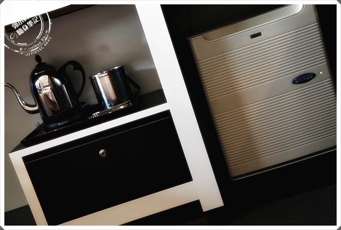 電視櫃下方的是保險櫃跟冰箱,還有一個燒開水的熱水器跟小冰桶,冰塊在門外走廊電梯旁有一台製冰機。