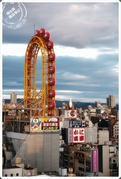 | 窗外就可以看到整個商圈,最明顯的莫非是唐吉軻德的激安殿堂的半圓型像摩天輪般的招牌。 |