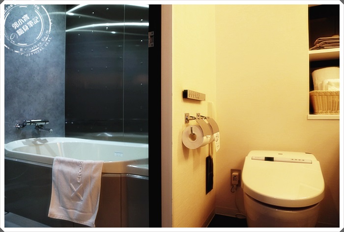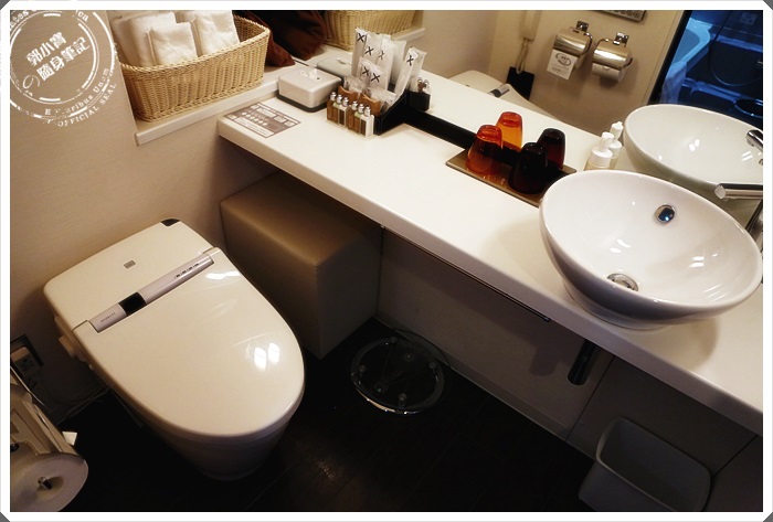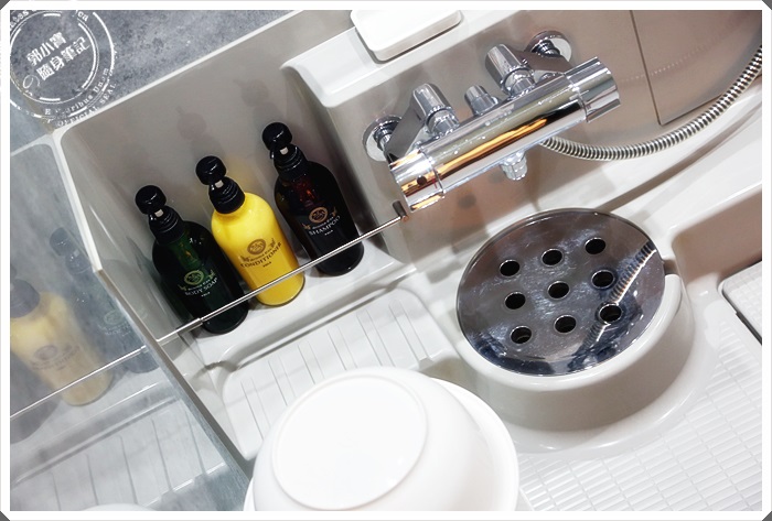 | 牙刷跟洗臉的沐浴備品都在洗手台上,日本很多飯店大部份都沒有備品,幾乎都是大罐的直接放在浴室。 |