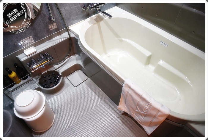 | 浴缸跟淋浴是在同一間的,還有一個小坐墊,其實我比較喜歡這樣的設計耶,台灣都要站著洗澡好難塗肥皂之類的,坐著洗澡多棒啊!!! |