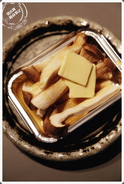 兩人套餐裡面的菜色,香菇的根部好長,跟一般台灣看到得不太一樣,但是烤過後吃起來口感卻大致相同。 |