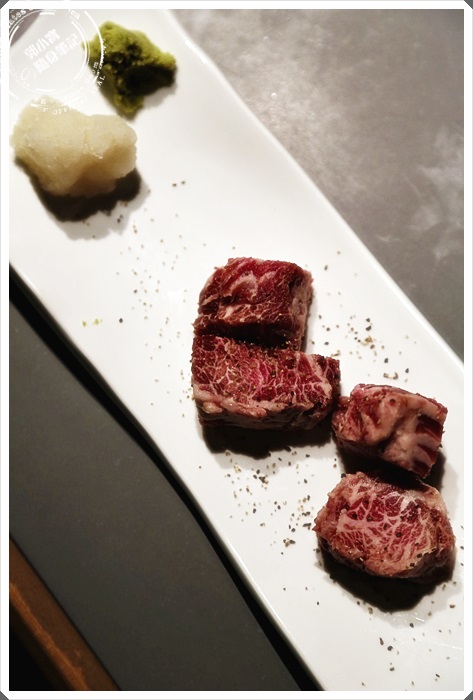 | 兩人套餐也有提供一塊比較大塊的牛排肉,肉的油花看起來沒有特別的多,但是吃起來還算軟嫩。 |