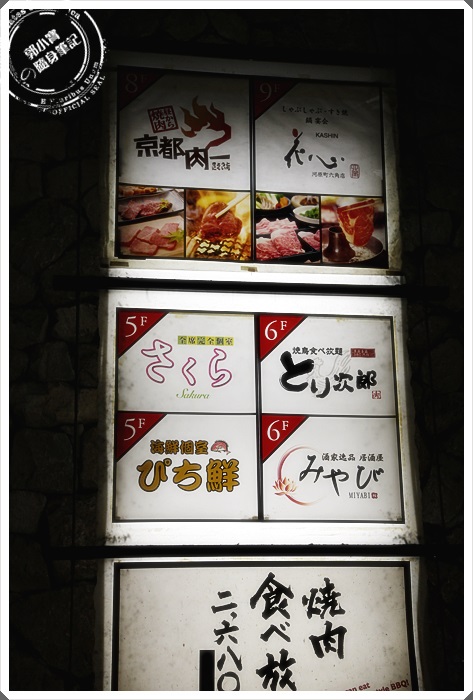 | 大樓一樓放了許多餐廳的招牌,但是後來幾次我仔細看了一下不管什麼品像跟品牌似乎都是同一個集團經營的,看樣子我遲早會把這棟大樓的廳餐吃光,肉一燒肉主要位於這大樓的8樓。 |