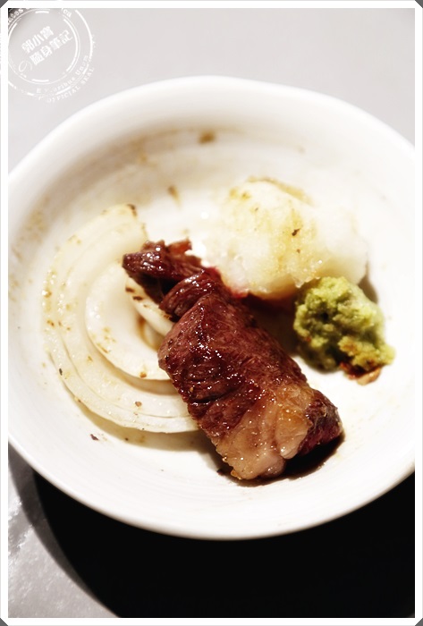 | 平均一口就要500日幣的黑毛和牛其實算起來似乎感覺有點小貴,大概換成台幣這樣一口牛肉就要噴100多台幣,因為最近日幣的跌幅還滿大的,所以請自行換算,但是一烤下去看她肉汁噴發的樣子,讓我們都忍不住的吞了好幾口的口水。 |