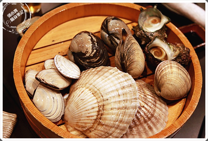 | 正在品嘗刺身的時候,服務人員端上來了接下來要料理的貝,逐一解說等等要料理的貝的名子,相當的專業,算是讓客人知道至少等等吃下去的哪一些XD |