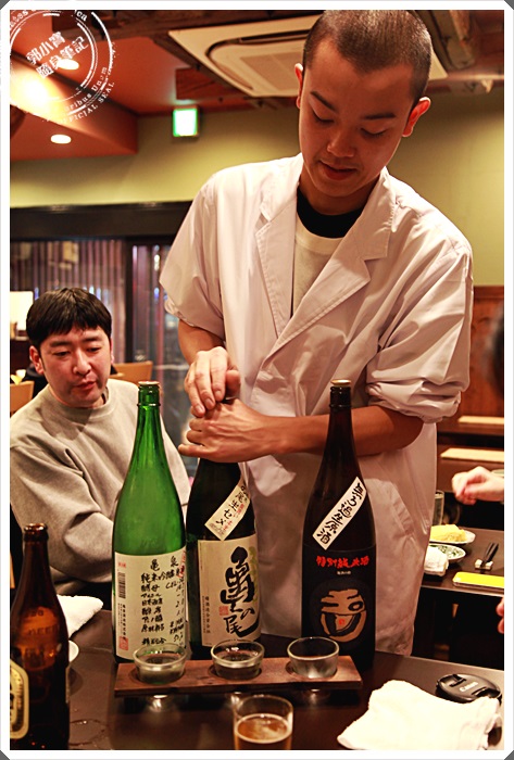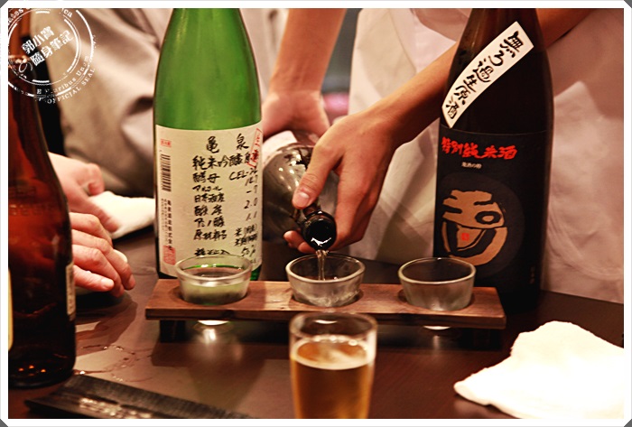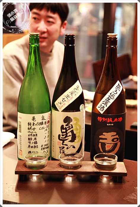 特別的是,服務人員還會拿三個酒杯上來,為妳斟上適合這些貝料料理的清酒,每一口貝搭配一款清酒,都相當的講究,老實說這樣的飲食相當的快樂!!