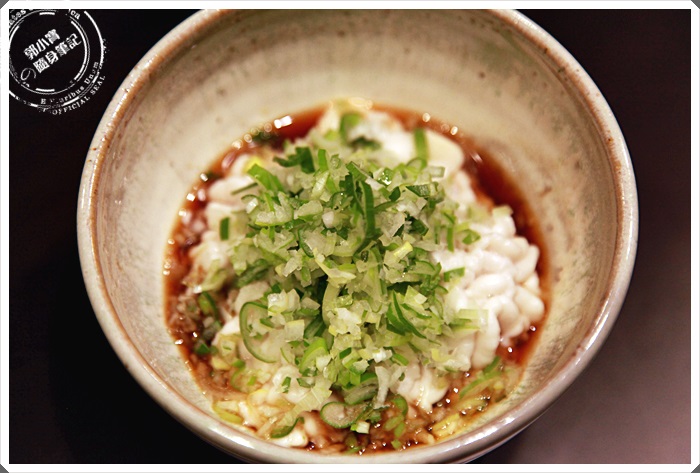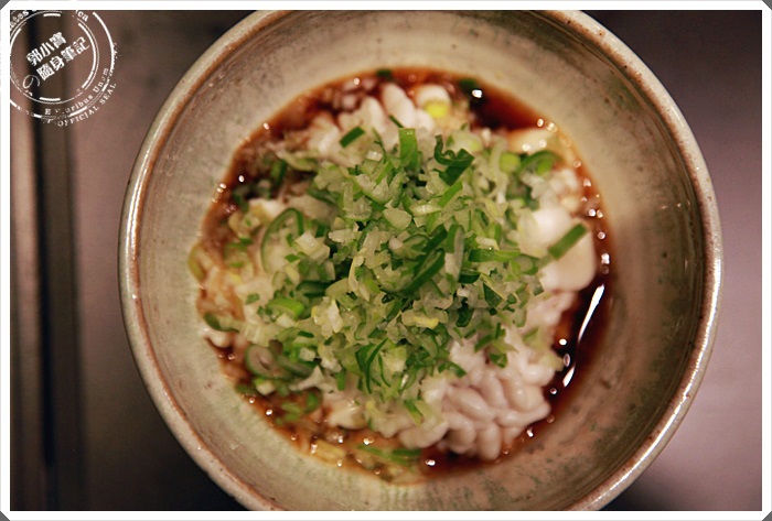 真鱈白子就是屬於北國的真鱈的精巢,也就是台灣俗稱的魚鏢,真鱈本身就相當的珍貴,加上冬天時後迴游準備交配的真鱈,這時候體內都有儲存豐富的白子,所以算是相當珍貴的食材,蒸過之後保留最原始的風味,放在醬汁碗裡面灑上蔥花,夾上一口真的超甘口的,那如棉花糖般的口感融化在我的口中,美味!!