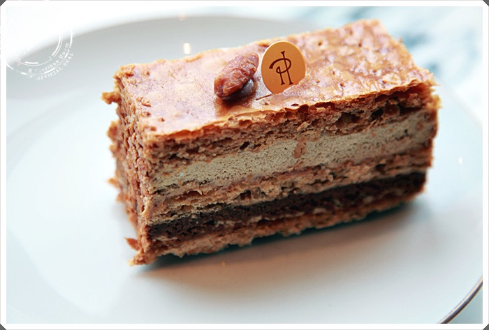 千層派光是用看的就相當的可口了,用湯匙切了一塊放入口中,層次酥脆相當的明顯,榛果的香氣十分濃郁,搭配著內餡的幕斯相當迷人,香甜卻不膩口,咀嚼中酥脆的千層跟榛果的口感還有焦糖的氣味一直反覆迴盪,不管是口感還是味蕾上都相當有著豐富層次的衣道甜點。 |