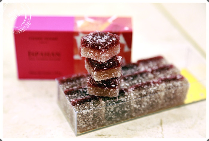 最後朋友還外帶了Pierre Herme的軟糖,這倒是我頭一次吃到Pierre Herme的軟體,這軟體有機會一定要試試看,他有別於打破你對軟體的刻板印象,一入口咀嚼就相當的滑順,沒有台灣刻板印象的需要QQ的口感,那爆口的覆盆子香氣一直環繞著,讓人忍不住在拿起一塊塞入嘴中,一盒的價位大約在2000多日幣左右。 |