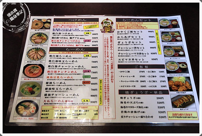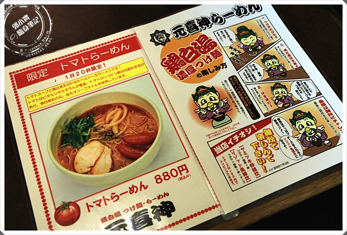 | 元喜神拉麵的介紹,最主要還是以雞白湯為主,是店內的招牌湯頭,利用卡通生動的來表現。 |