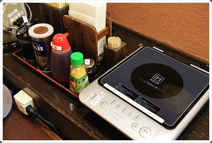| 桌子旁邊擺放了很多調味料,其中讓我比較有興趣的就是還有一個小的IH爐,其實在台灣我也超想買一個IH爐的,這可不是一般的電磁爐,IH爐安全多了而且還可以炒菜呢! |