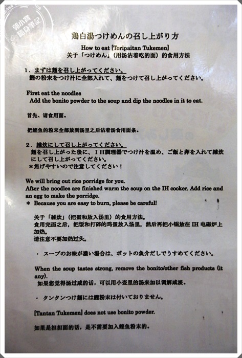 | 菜單裡面還有一張特別交導怎樣吃沾麵的方法,IH爐主要是給點沾麵的客人使用的。 |