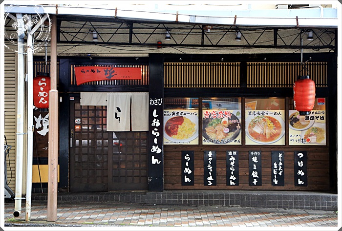 三島車站附近的拉麵店在日本網站似乎沒有特別高的推薦,所以我們只能在其中大概找了幾家,其中以三島車站前面這一家煌看起來還不錯,店麵外表是全木頭老裝潢的感覺,第一印象還不錯,看了一下外麵的海報就覺得是他了。