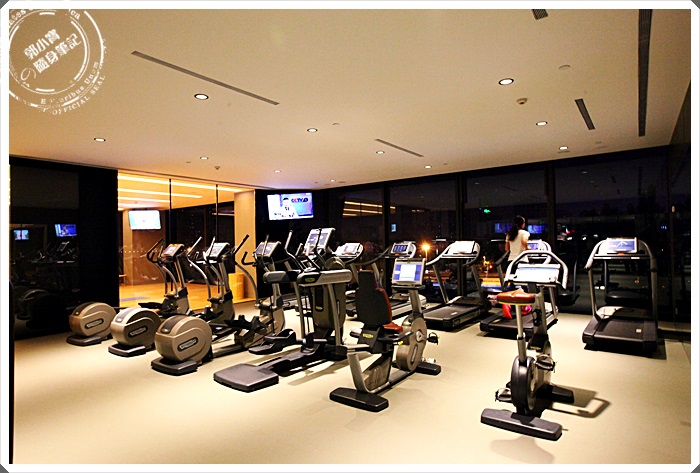 | 健身房也比一般飯店來的大,除了有飛輪跟跑步機以外,還有許多重訓的器材,跑步機的前方就是落地窗玻璃,可以看到一整個鄭州的風景呢! |