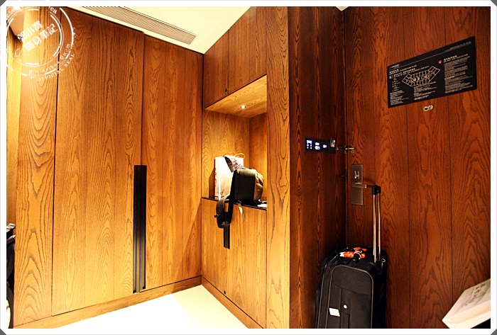 | 一進入房間就可以看到玄關相當的寬廣,與一般飯店的小玄關然後旁邊是廁所的設計完全大不相同,通常拉著行李手裡拿著一堆東西,都要很狼狽的走到房間裡面,但是建業艾美在入口處就規劃了相當大的空間,方便房客入門就先把行李擱置在一旁,茶水貴跟衣櫥也同樣設計在這一個角落。 |