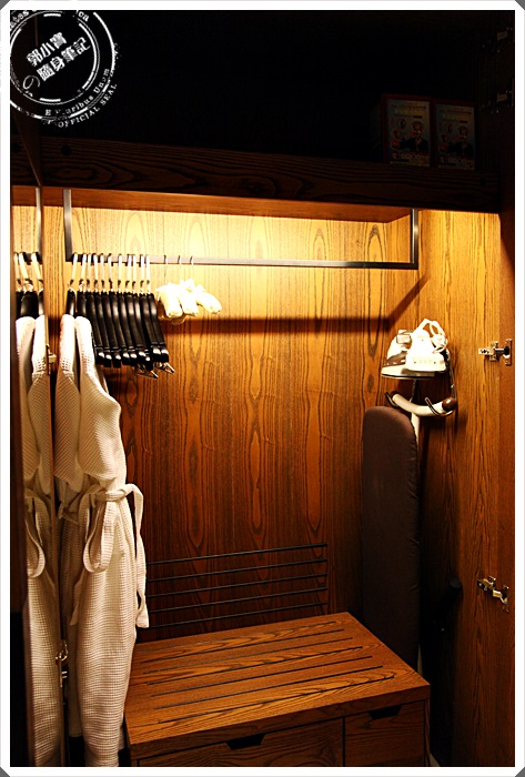 | 拍到這邊才想起剛剛衣櫥跟茶水間都還沒拍,立馬跑回衣櫥,打開衣櫥就看到了兩件睡袍,他們的睡袍很好穿,穿起來不會感覺到刺刺的,一旁還有電熨斗跟熨斗架。 |
