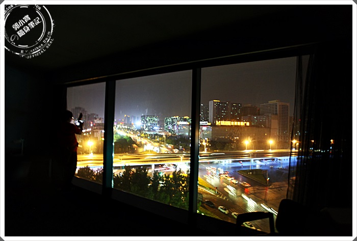 | 景觀窗簾是自動的,千萬別用手拉,控制台在床頭的上方,輕輕的一按窗簾就會緩緩的打開了,可以一覽鄭州的夜景! |