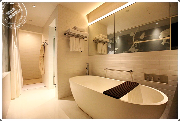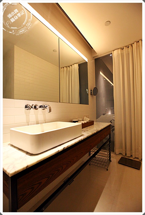 | 接下來就是讓我超喜歡的浴室廁所了,空間是長條型的空間,洗手檯相當的大,鏡子可以一次讓兩個人整理儀容,兩個人一起也不會覺得擁擠。 |
