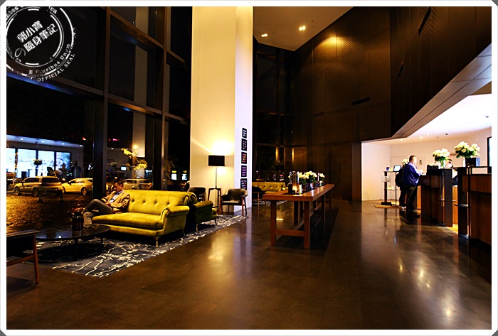 | 進入了大廳後沒有看到氣勢非凡的大廳,而是有別於一般飯店看到了三叉路口,左邊就是辦理入房手續的櫃檯,艾美酒店的挑高也相當的高,極簡約的風格讓我滿喜歡的,櫃台前的歐式沙發屬於硬皮的,坐起來也相當的舒服,搭配著大面積的落地窗輝映著街景,暗黃色的燈光也帶些懷舊的復古感,整體上都是我愛的風格。 |