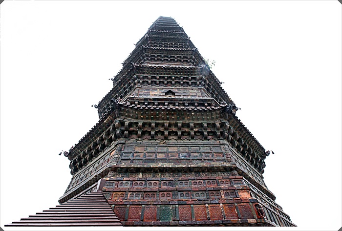 這建築真的是太屌了,連風向都考慮進去了,吹了千年後開寶寺塔真的已經向另一邊傾斜了。