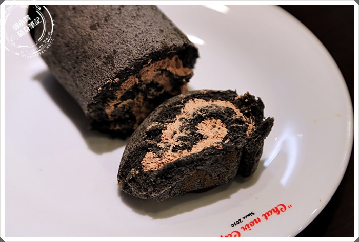 這一款蛋糕捲同樣也是相當的熱門,看起來有點北七北七的造型,蛋糕捲本身同樣是巧克力口味。