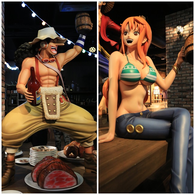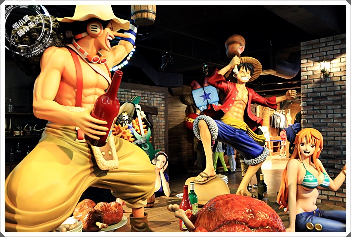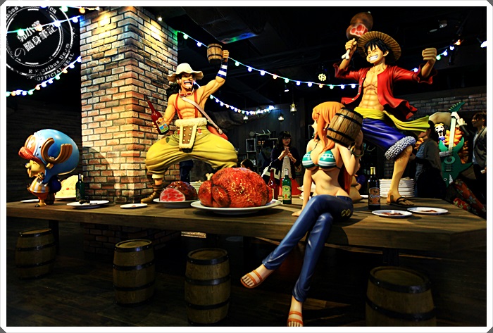 | 一路上走進來就可以看到魯夫一行人又再開宴會了,這公仔的等級簡直只有日本才看的到,其實之前台灣九族的也做的不錯啦,但是日本真的連小細節都處理的很棒呢! |