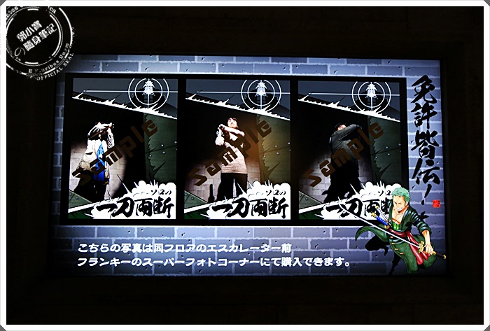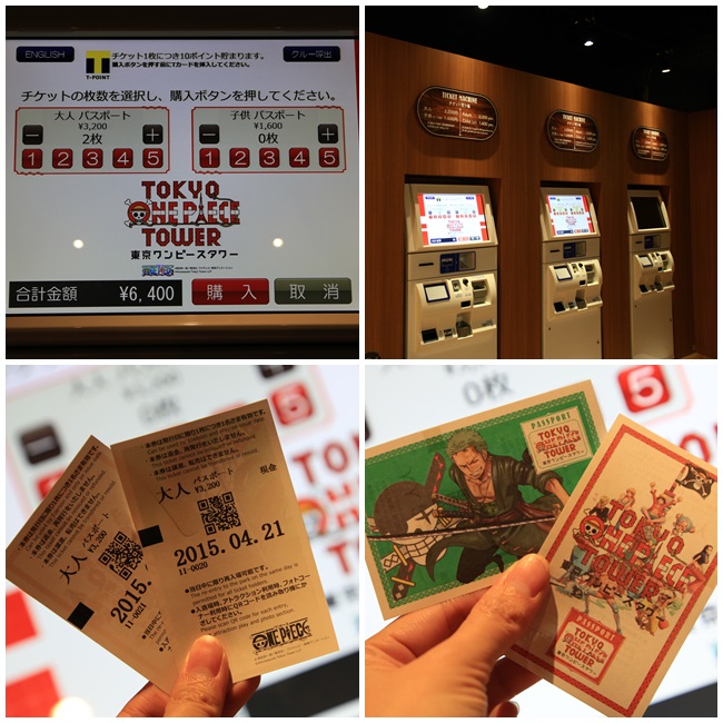匆忙的跑到售票機口,一個人的門票是3200円,對我們來說是不便宜,但是對一個海賊迷來說卻是相當的值得,門票背後的圖有好幾種,剛好有得到我最想要的那一張,全員集合的那張,還有MOMO最喜歡的索羅,門票記得要保留好,因為後面很多地方都需要這張門票背後的QR碼。