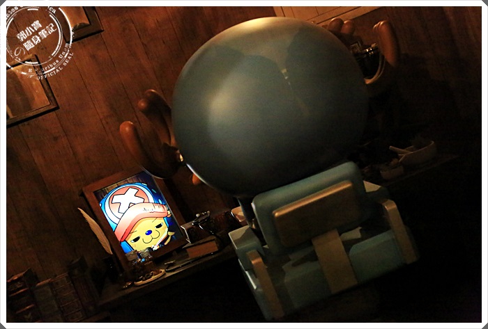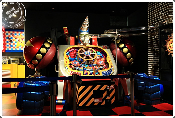 | 二樓最吸引小朋友注意的大概就是這一隻一直鬼吼鬼叫的佛朗機機器人了,這一台似乎是遊戲機的樣子,投幣就可以跟他互動玩耍,但是我們沒有過去玩所以也不是很清楚。 |