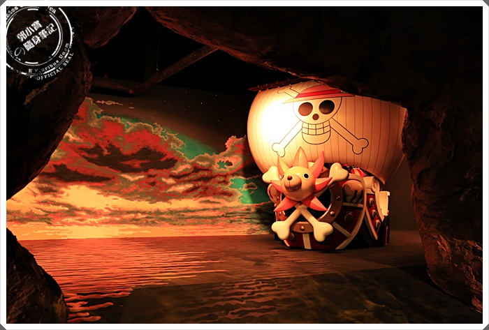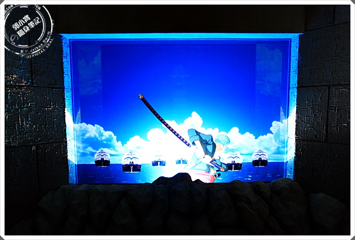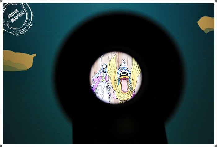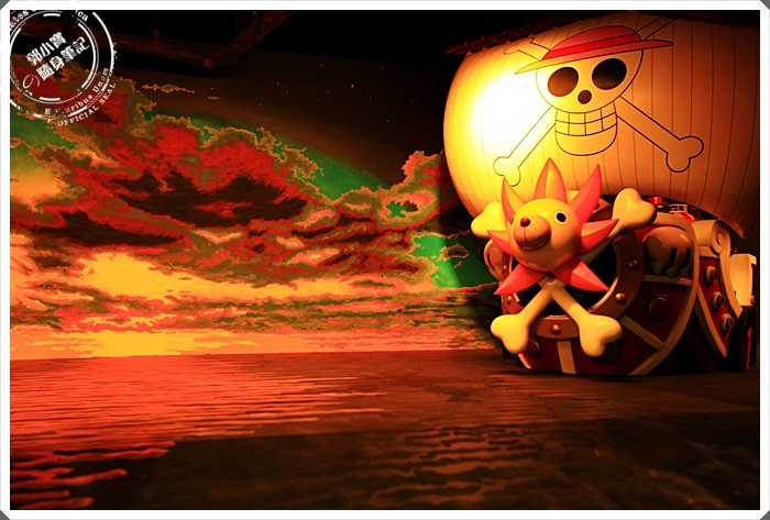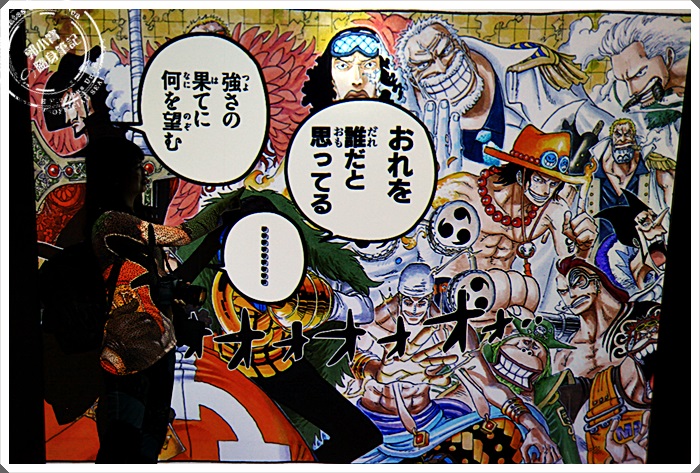 | 最後的一幅畫就是海賊王裡面的全角色,機都都在這一張圖裡面,是捲動式的移動,不只有聲光的效果以外,還可以跟遊客互動,只要往角色身上拍一下,就會有角色的經典台詞聲音跟文字跑出來。 |