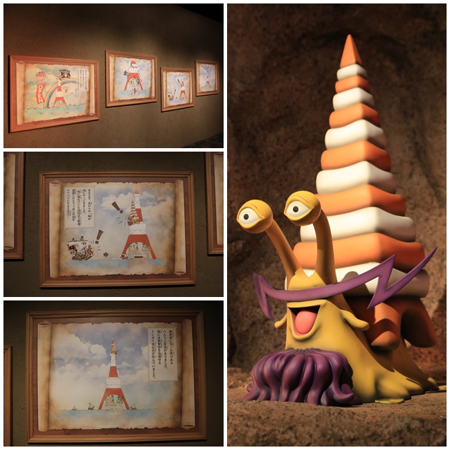 東京鐵塔本身就是屬於一個通訊電塔,巧妙的與海賊王的電話蟲做了一個結合,這隻電話蟲的金三角殼也堆疊的太高了吧,意思就是他代表固守東京鐵塔的總機電話蟲。