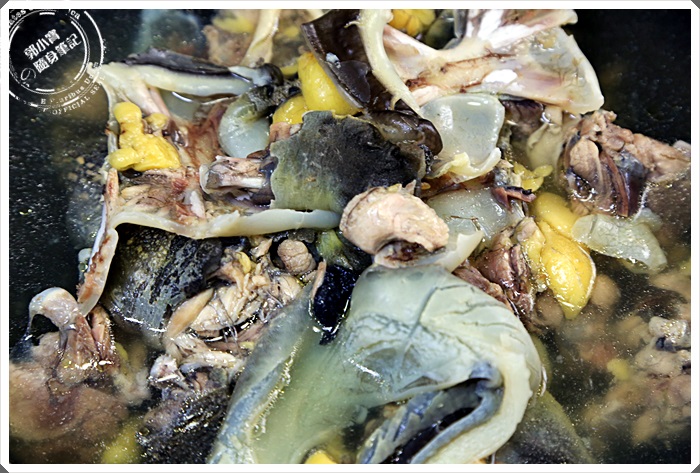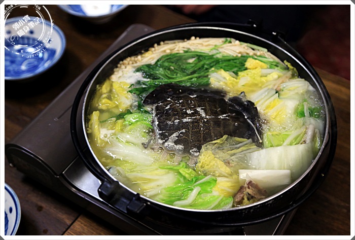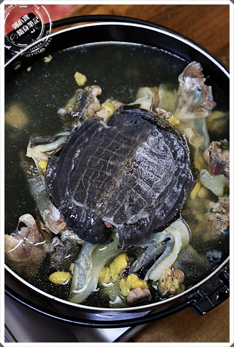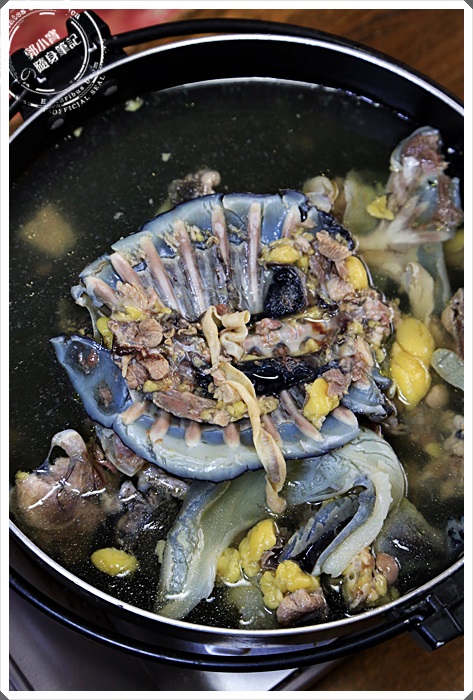 鍋子一上來的時後就可以看到一整隻被處理完的鱉靜靜的在裡面了,放好了蒜頭跟其他調味蔬菜真的還滿嚇人的,但是我必須老實說這一鍋大概是我今天最喜歡的一道料理了,雖然看起來怵目驚心的,但是有機會真的要來喝一下這一鍋湯品!!