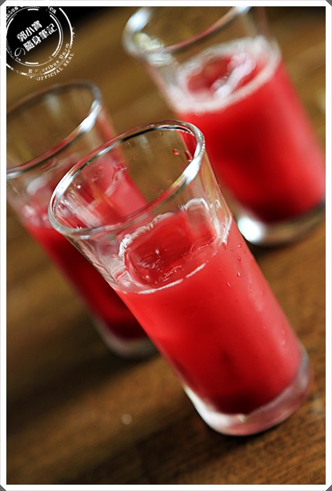 其實是蛇血!!蛇血一直以來都是被認為是男人的養精聖品,店家稍微有調味過,所以喝起來不會感覺太腥口。 |