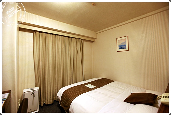 | 房間大小大概就是大家看到的這樣,算是還不錯的空間,乾淨舒適,窗簾打開是正好面對松本車站,但是會跟對面飯店的清楚的對望到,所以我們都沒開窗廉。 |