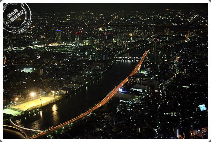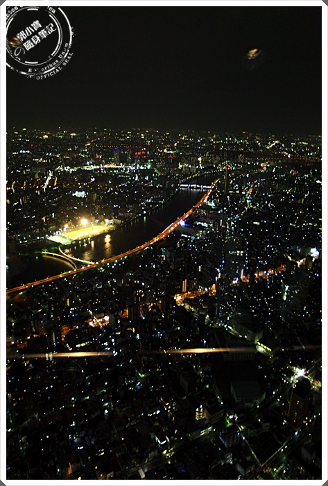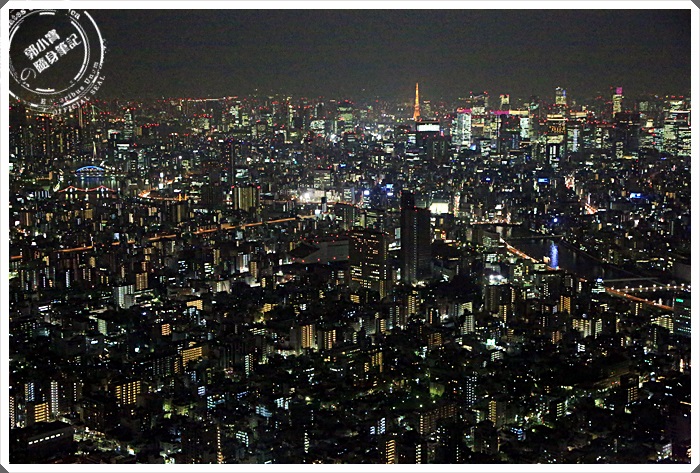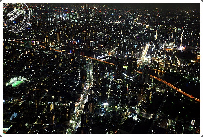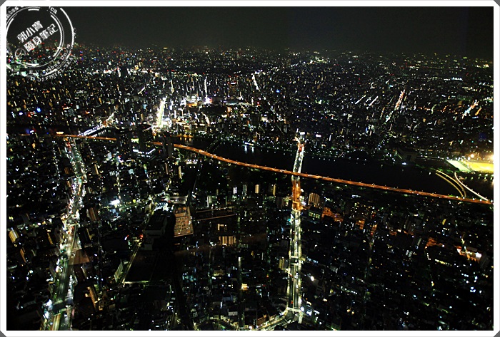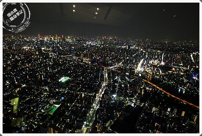 晴空塔上看東京夜景確實可以看的超遠的,而且因為是圓形360度的視野,所以可以看到任何一個方向,東京真的超繁華的,鬧區的燈火似乎都綿延到地平線上了。