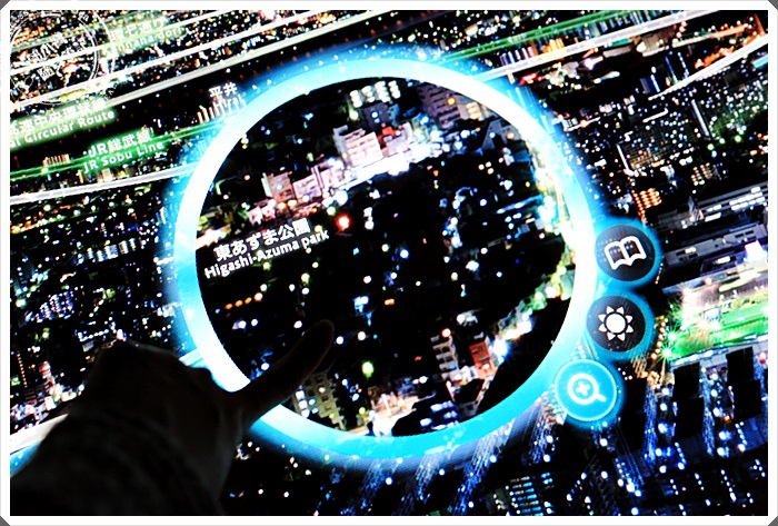 晴空塔的電梯也還算快速,一下子就到了觀賞夜景的樓層,其實東京有很多大樓都可以免費觀賞夜景。 |