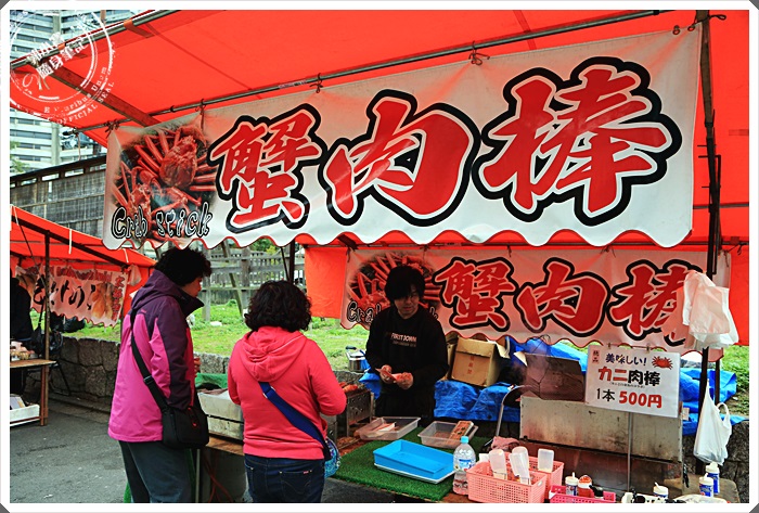 | 每次日本神社有祭典的話,我最喜歡的就找蟹肉棒的攤販,這蟹肉棒的攤販在日本算是不多,日本攤販賣的東西沒像台灣那麼的豐富,來來去去就是那幾樣,所以蟹肉棒算是很特別的。 |