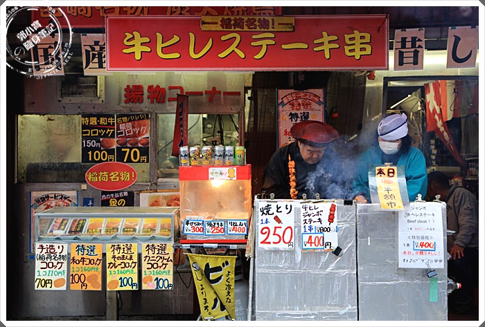 | 除了攤販小吃以外,這附近最熱門的大概就是稻荷神社旁邊的烤肉攤了,也是唯一有固定攤位的美味小吃,來到這邊幾乎人人都會嗑上一根,熟門熟路的遊客幾乎都會來。 |