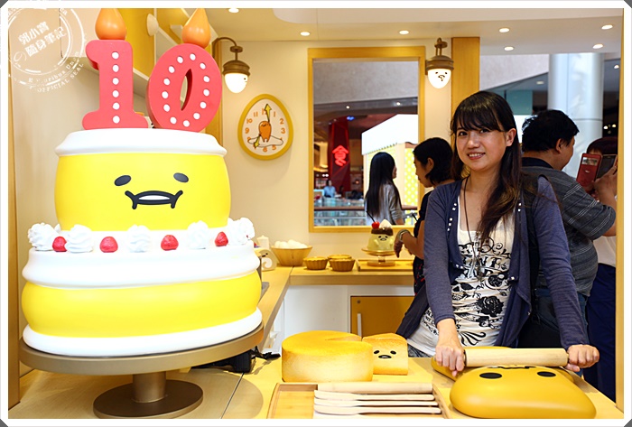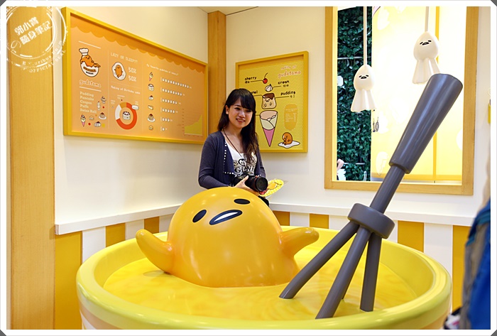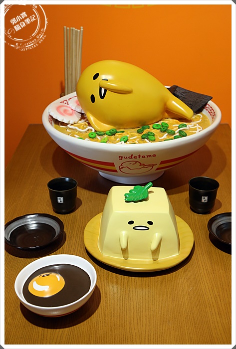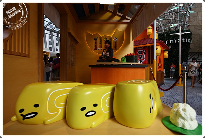 | 店內的玉子燒蛋黃哥橫躺著感覺也是慵懶的超舒服模樣,經歷兩個月的展覽還可以保養的這麼好真的是不簡單啊 |