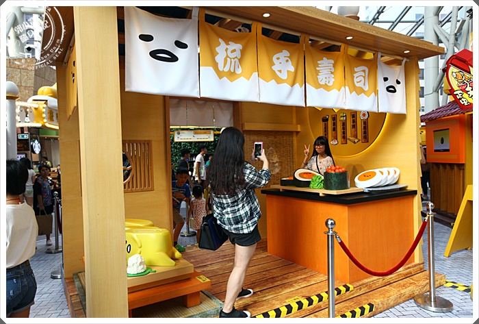 | 這次的主題是蛋黃哥食堂,現場有很多以蛋黃哥為主題的各式各樣的食堂,從壽司店到拉麵店還有甜點店都有,每個人幾乎都很守規矩的排隊拍照。 |