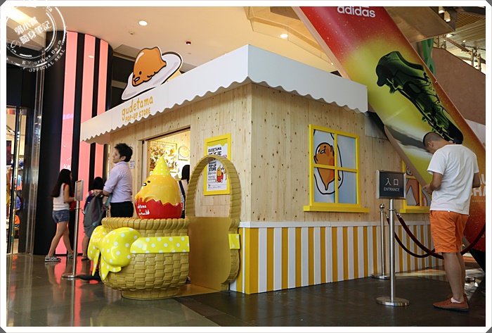 一上到4樓就看到人潮大批的聚集在這裡,每天早上11:00到晚上11:00都可以免費參觀,真希望台灣也有蛋黃哥的展覽,因為真的是太療癒了,門口就有個大大的梳乎町,話說很多香港朋友都不懂我們為什麼大老遠地跑來香港看這期間限定的展覽,其實特別來香港看蛋黃哥的人真的是大有人在。