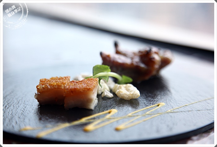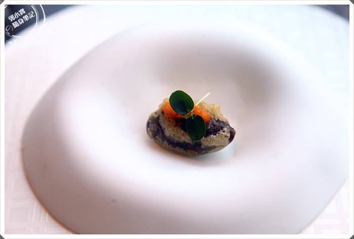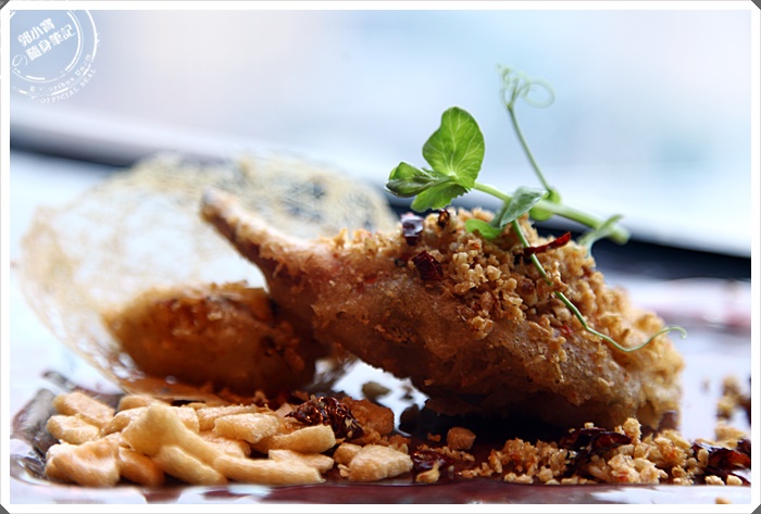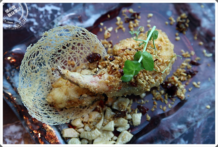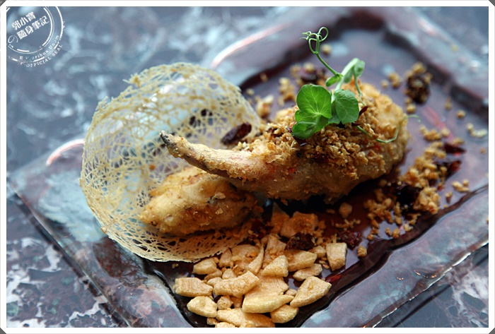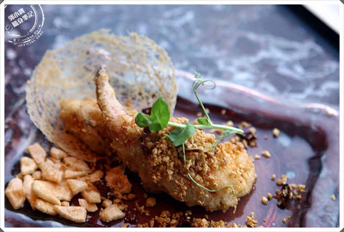 | 天網拉絲的令人覺得美麗,裝飾著大鉗讓餐點看起來更加的可口,難怪會被譽為一開始就是衝著米其林來的,從頭吃到現在,每一個餐點擺盤都有特別的裝飾過。 |