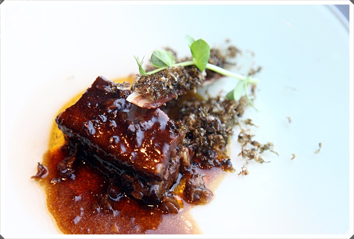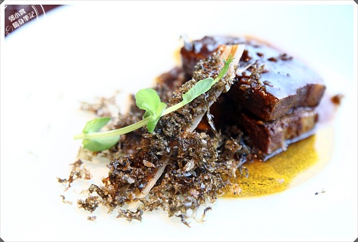 梅菜在我的記憶中就是口味相當重,入口也相當油膩,所以相當適合下飯,但是麗軒這邊卻完全不是這麼一回事,夾起碎花的梅菜入口,那清爽的口感是我對梅菜顛覆刻板印象的第一個反應,帶點焦糖淡甜味是我對他的第二個驚訝,搭配著風乾臘肉條入口又是不一樣的風味,這個真的相當的特別,完全顛覆了梅菜扣肉的印象了!!