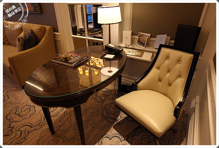 辦公桌在進入客廳的右手邊,一樣相當典雅的皮飾椅,檯燈也讓人相當驚艷。