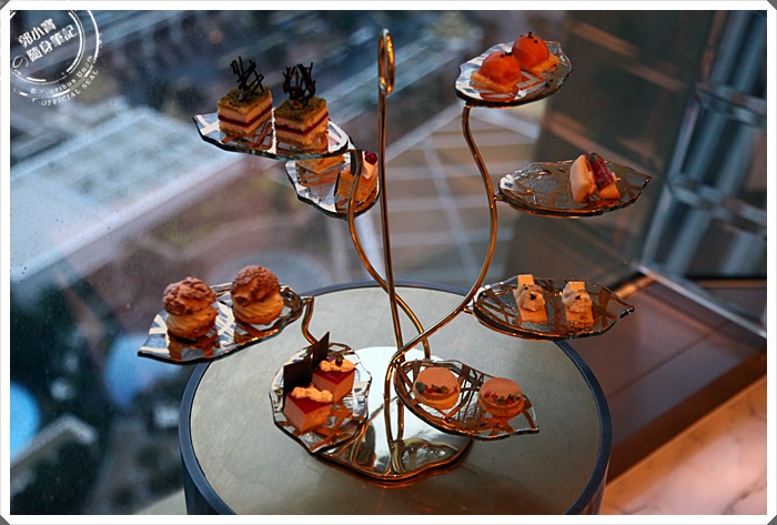 | 麗思卡爾頓酒店的下午茶好美,特製的金色葉片造型只有麗思卡爾頓酒店才有,每個葉片上放著可口的點心。 |