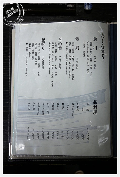 前川菜單的選項還滿多的,之前去尾花的菜單就簡單許多,前川的價錢相對的比較有選擇性,可以依照自己的分量多寡跟喜好自己搭配。