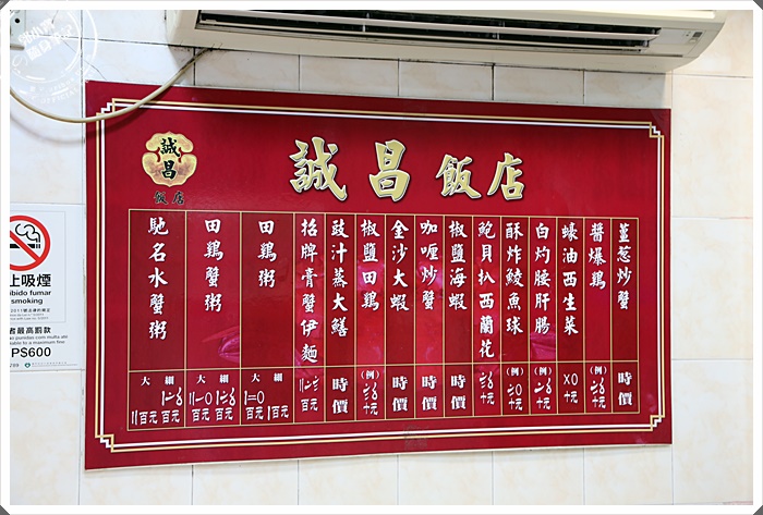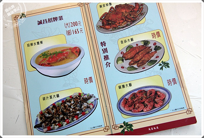 | 誠昌飯店主要的招牌菜色都掛在牆上,價目表也是一目了然。 |