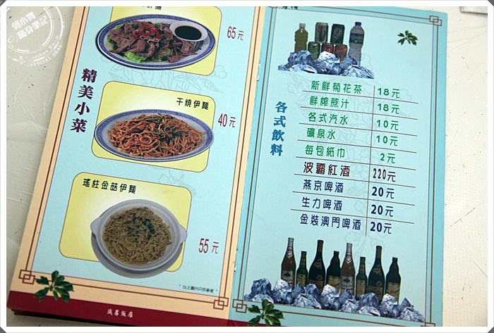 誠昌飯店的菜單品項頗多,加上店家特這的冷飲增加了更多的選擇。