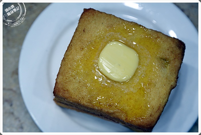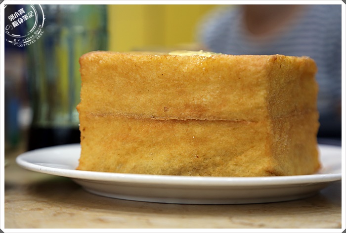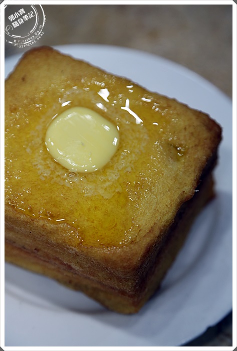 | 看看這超級厚片西多士,用看的就覺得熱量破表,但是西多士就是要像這樣奶油超多才美味,中間又放上了一片奶油,上桌的時候簡直都快瘋了,連側邊都煎上金黃色的蛋黃液,一整個超合拍。 |
