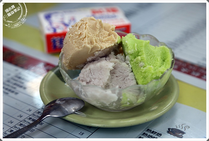 | 也可以選擇冰淇淋球,基本上可能這幾年的冰淇淋種類吃到多了,從綿綿冰到雪花冰還有新鮮水果跟義式冰品等等,嘴巴都養刁了,所以對這種古早味的冰品真的沒有太多的感覺,唯一的感覺就是好古早味的味道@@ |